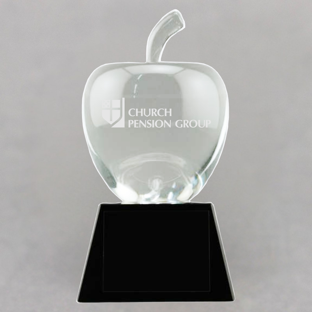 The 4″ Clear Crystal Apple without Leaf on Black Crystal Base – Engraved Plate Only would make a wonderful gift for Educators, for honoring Years of Service, as a Retirement Gift, or as a Teacher of the Year Award.