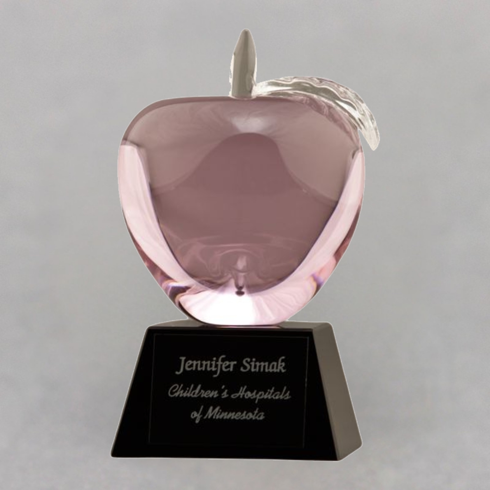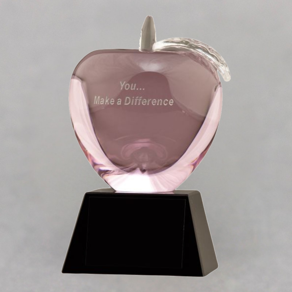 This Pink Crystal Apple Trophy makes a Healthcare Awareness Gift Idea for a Nurse, Staff Member, or a Doctor. Maybe you need a Retirement gift for that special teacher. With the custom etched apple, you can add a special touch when thanking someone who has made a difference in your life.