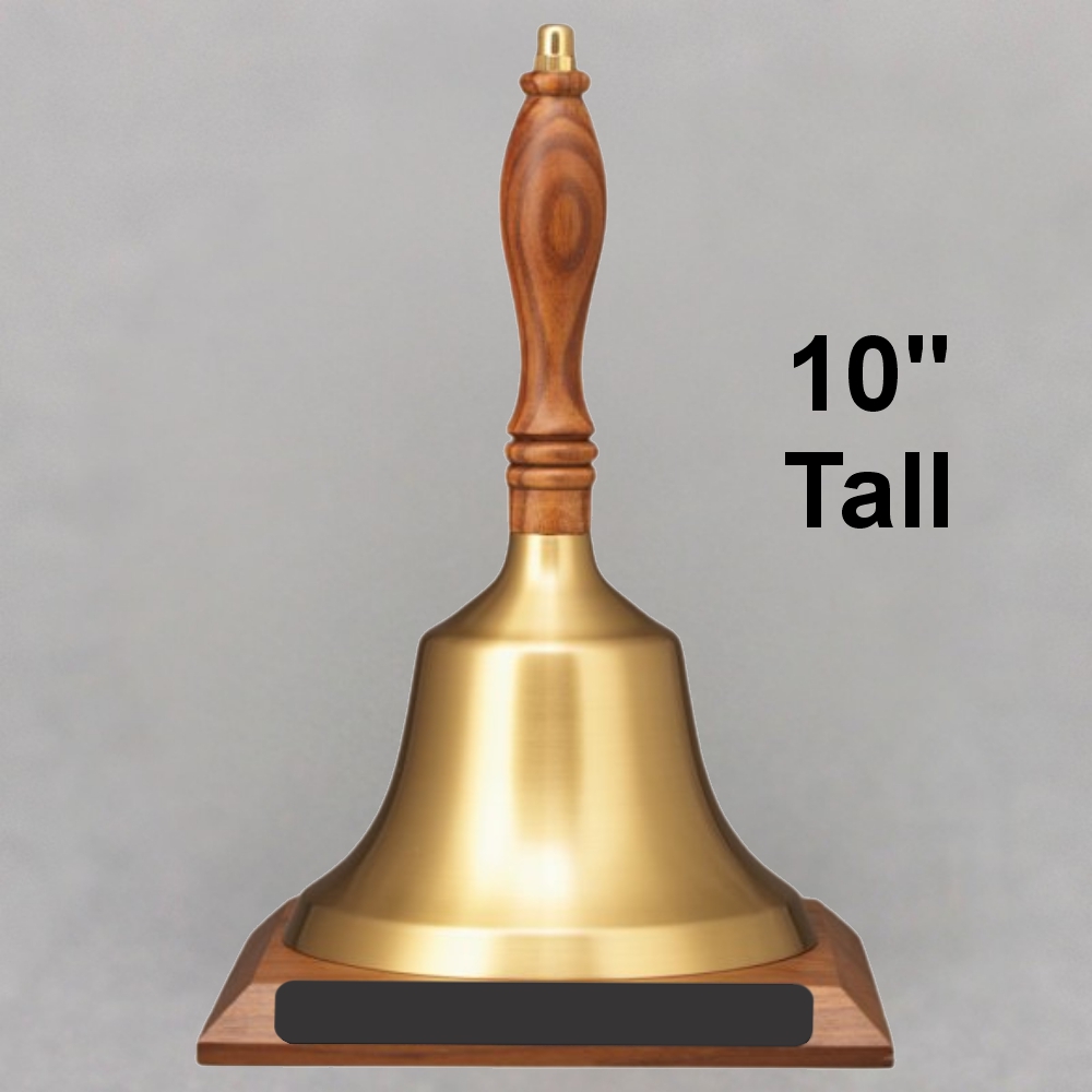 Teacher Hand Bells are a classic symbol of an honored profession, making them an excellent way to celebrate a special milestone or achievement. Our gold Brass Hand Bell features a beautifully brushed satin gold finish to give it an elegant look as well as to reduce the appearance of fingerprints and scratches. The Brass Hand Bell has a walnut finish wood handle and a tarnish preventative lacquer coating to keep your bell looking great for many years.