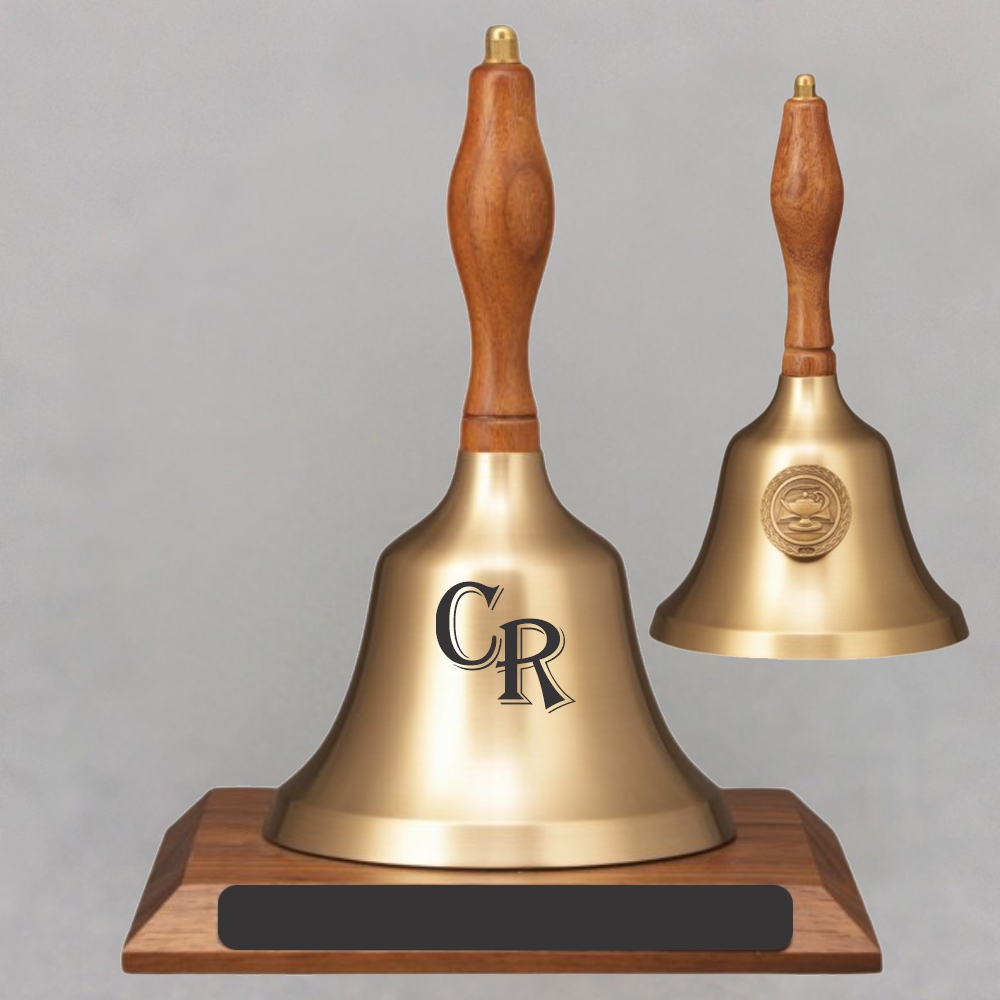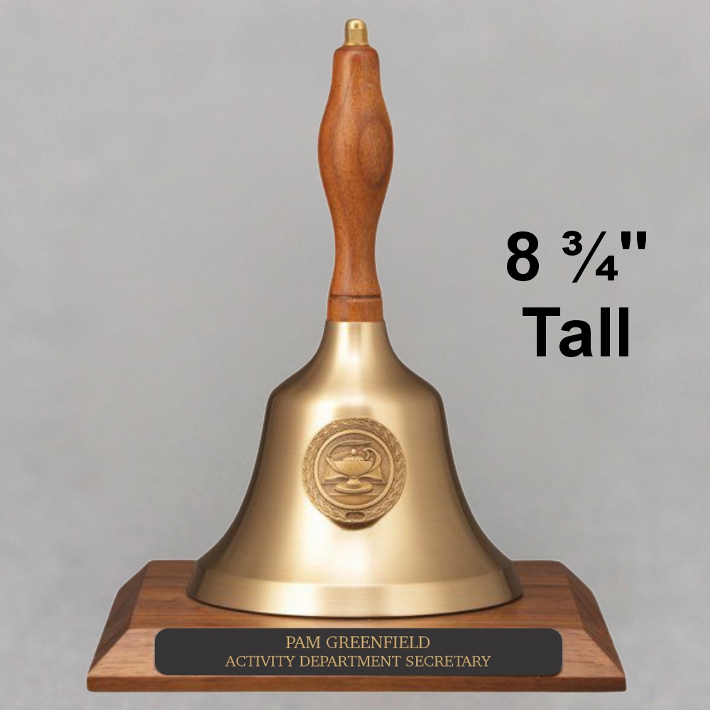 Teacher hand bells are a classic symbol of an honored profession, making them an excellent way to celebrate a special milestone or achievement! Our gold brass bell will feature a beautifully brushed satin gold finish. This new elegant look reduces the appearance of fingerprints and scratches. The bell still has its dark walnut finish handle and a tarnish preventative lacquer coating to keep your bell looking great for many years.