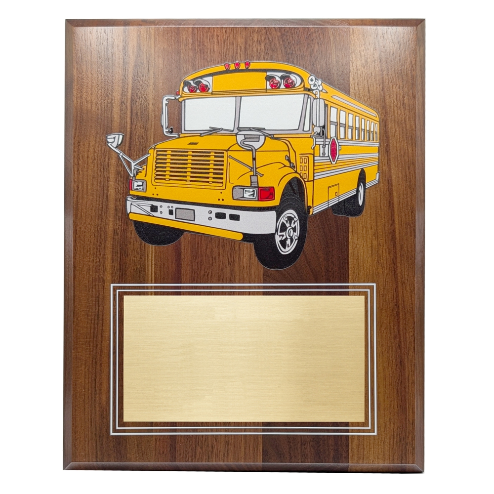 This genuine solid walnut plaque comes with a full color texture printed school bus and a gold brass engraving plate for your personalized message of thanks. This solid “made in the USA” walnut plaque makes for a great recognition idea for school bus drivers for years of service, retirement or a stellar safe driving record.