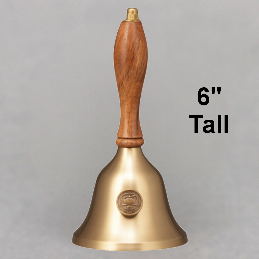 Teacher hand bells are a classic symbol of an honored profession, making them an excellent way to celebrate a special milestone or achievement! Our gold brass bell will feature a beautifully brushed satin gold finish. This new elegant look reduces the appearance of fingerprints and scratches. The bell still has its dark walnut finish handle and a tarnish preventative lacquer coating to keep your bell looking great for many years.