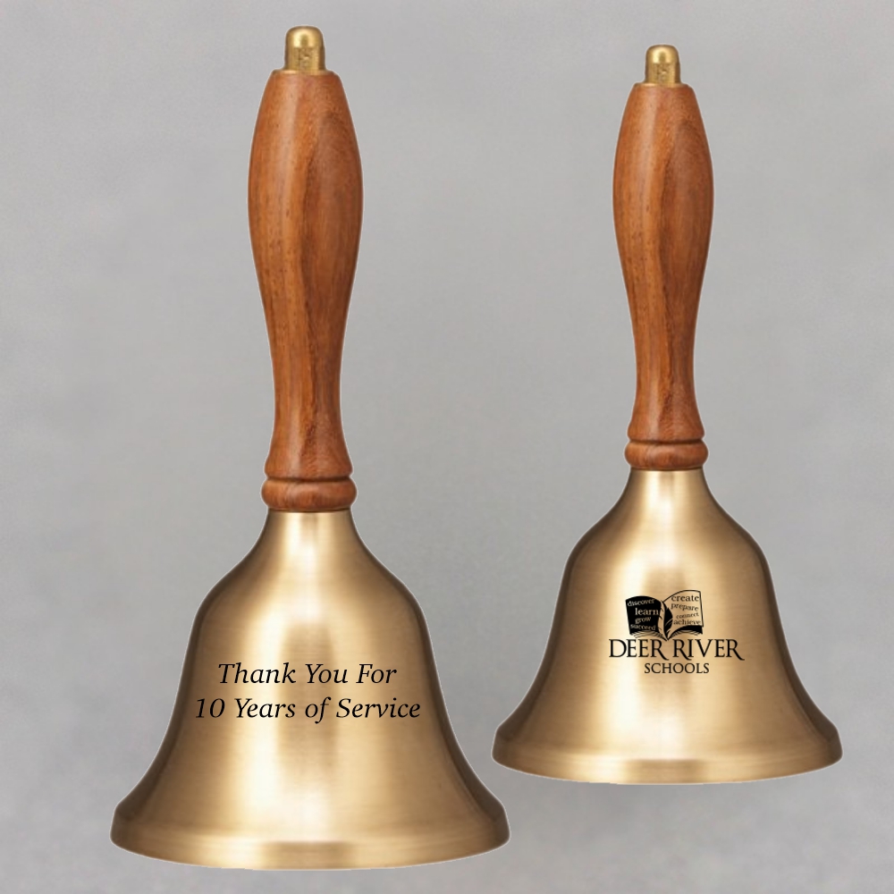 The Small Teacher School Bell is the ideal retiring teacher appreciation gift. Some other ideas would be years of service awards, ring bell for service, concerts, weddings or possibly just to get someone’s attention. All will enjoy this handmade piece of art. With custom engraving you can your own unique touch to these bells.