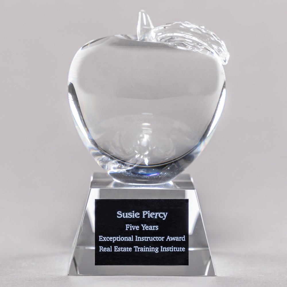 This Crystal Apple Trophy makes a Great Recognition Idea for a Teacher of the Year Award or an end of the year banquet award for a Paraprofessional Staff Member, Teacher, Food Service Employee, or a Nurse Gift Idea. With the custom engraving on the Glass Apple Award plate, you could add a special touch when showing gratitude to your teacher of the year or someone who has made a difference in your life.